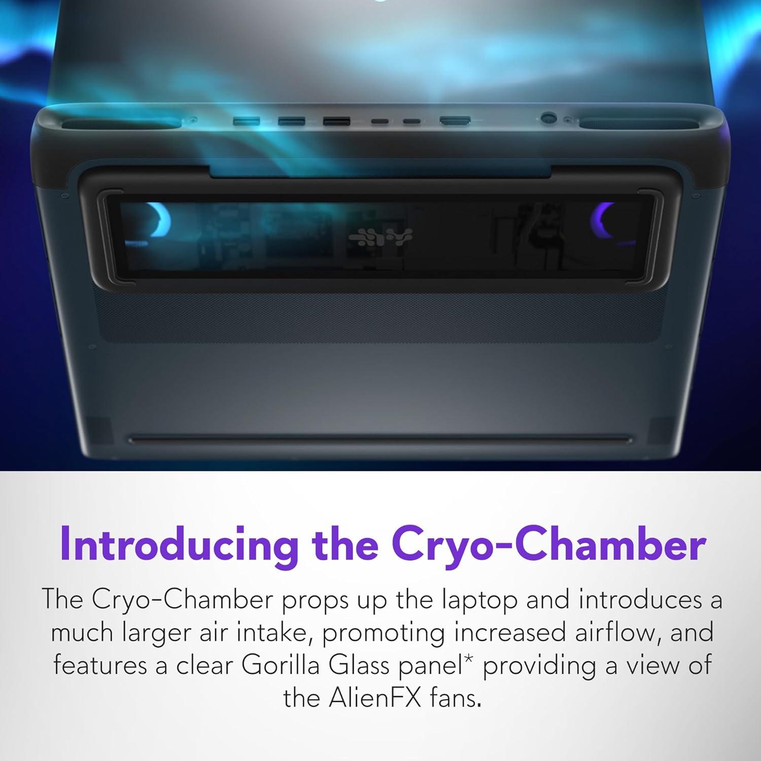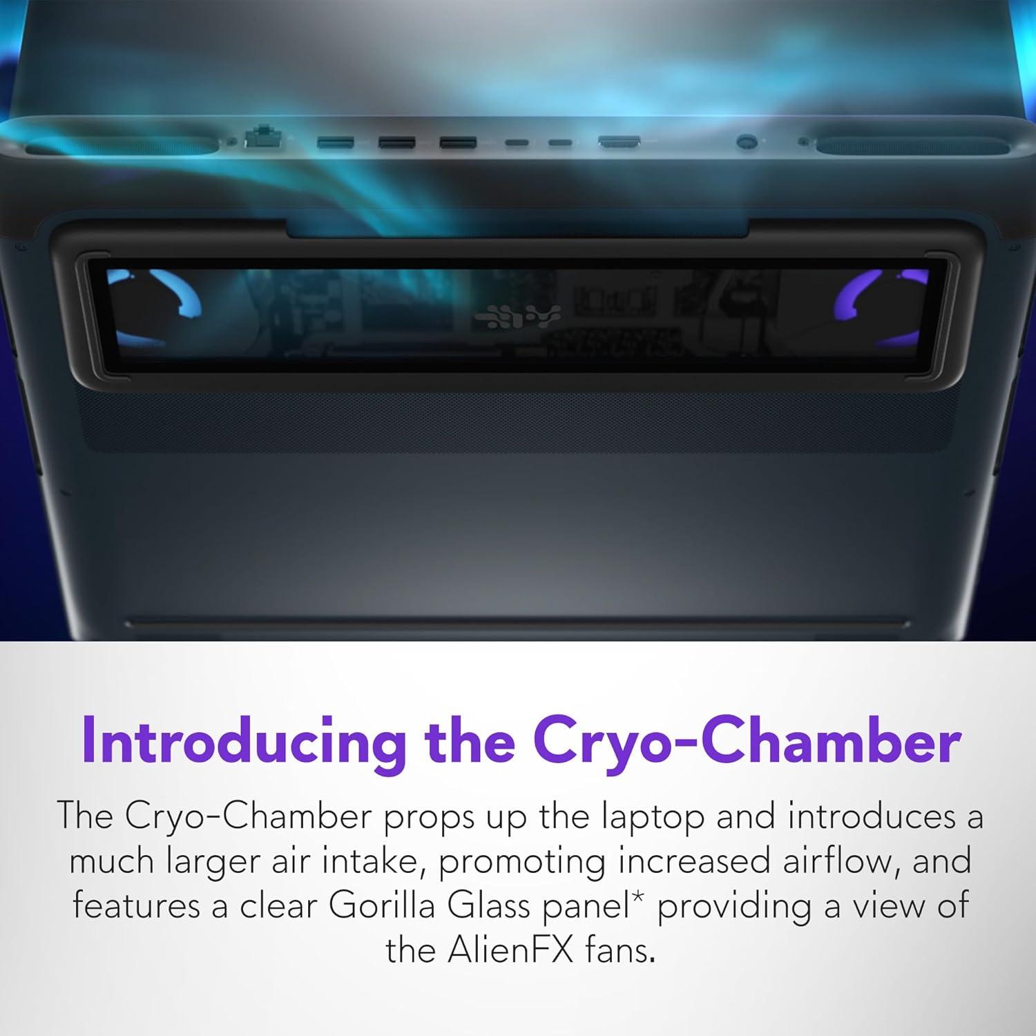 Introducing the Cryo-Chamber: Developed by our engineers, Area-51’s new Cryo-Chamber structure, located at the bottom of the laptop, focuses air to the core components where it matters the most.