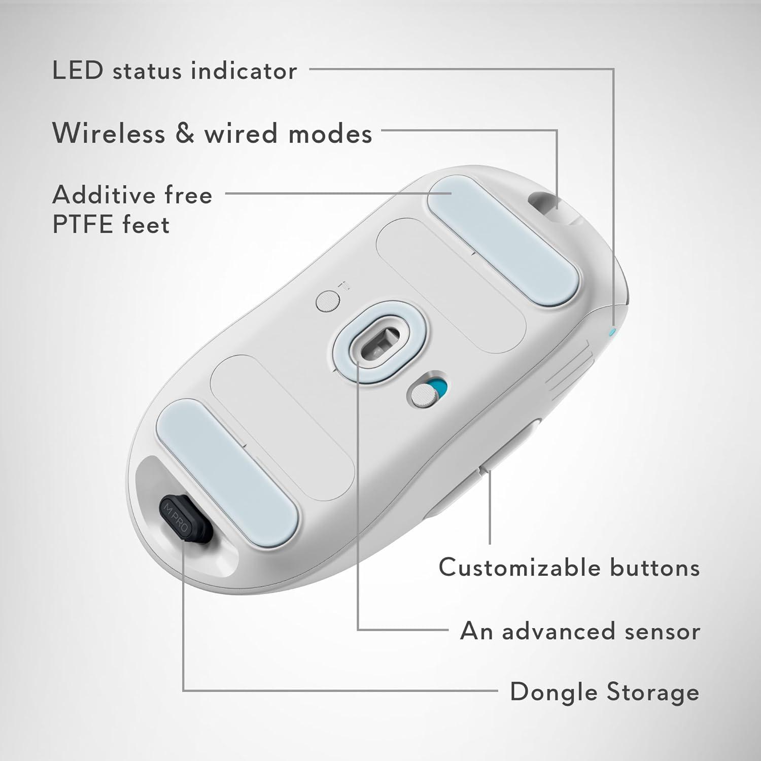Alienware Pro Wireless Gaming Mouse - 2.4GHz Gaming Wireless/USB Wired Connectivity, Adjustable DPI, Optical Sensor Technology, 6 Programmable Buttons, 650 IPS Sensor Max Speed - Lunar Light(Lunar Light)